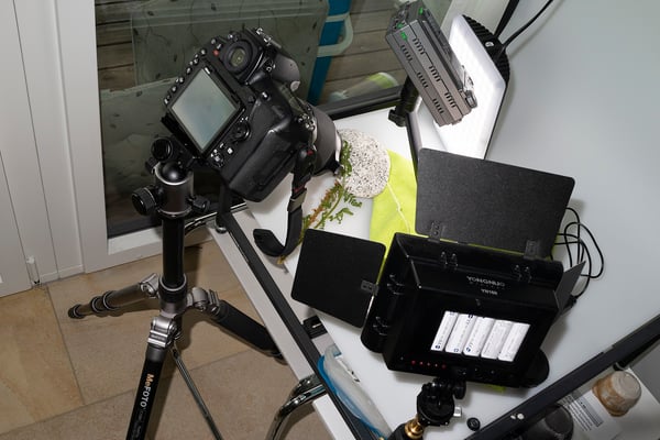 In dunklen Lebensräumen ist man darauf angewiesen, Licht selber mitzubringen. Ein Blitz, den man fein justieren kann und der von der Kamera abgekoppelt ist (Fernsteuerung) und Taschenlampen bringen meistens genügend Licht auf die Pflanze. Die Verwendung eines Blitzes hat auch den Vorteil, dass unerwünschte Bewegungen (Wind) eingefroren werden.